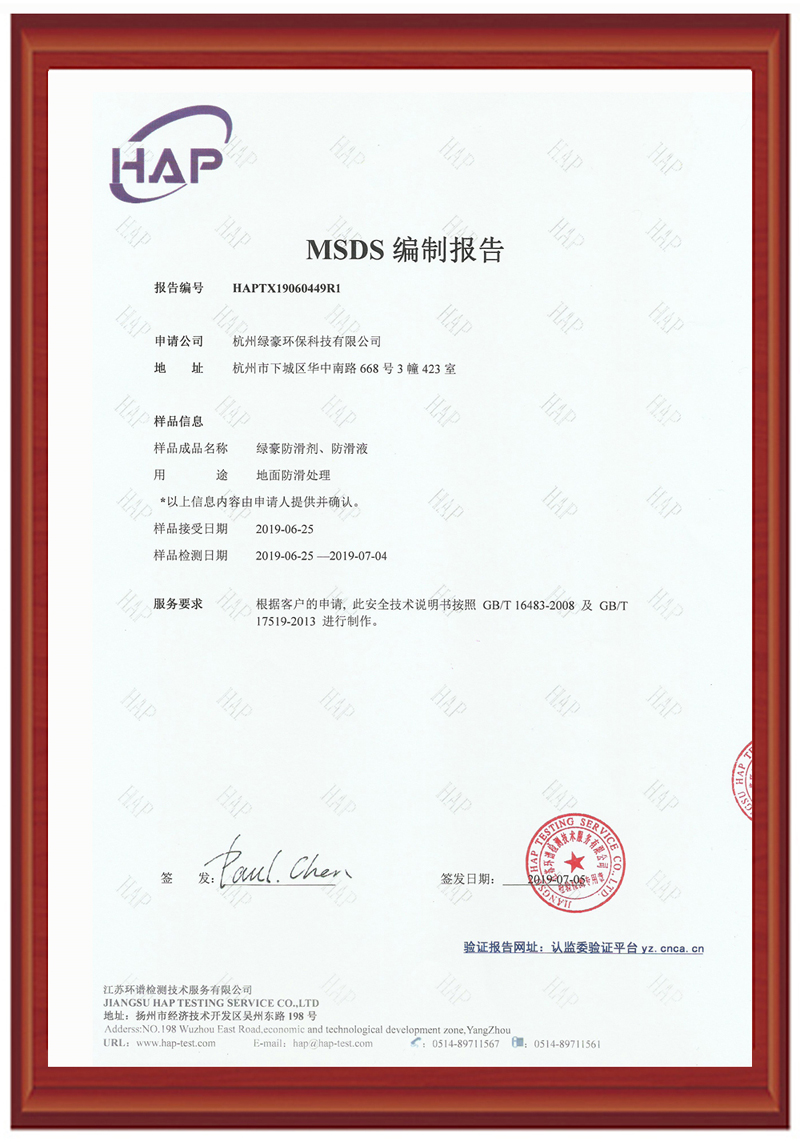 綠豪防滑綠色環(huán)保無毒無害,針對現(xiàn)有地面進(jìn)行處理,隱形防滑,處理后表面不增加涂層,打掃衛(wèi)生無影響,長久有效,遇水遇油都防滑、、、